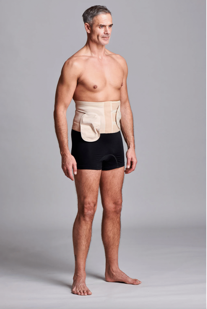 Suitable for parastomal, incisional and umbilical hernias. To determine the length of the belt measure around the body with a tape measure going across the stoma site and hernia.